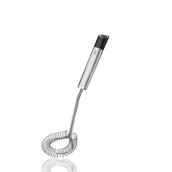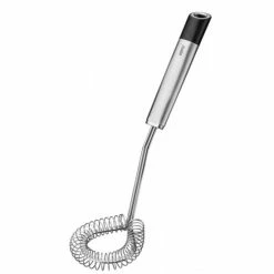 Durch seine optimal angewinkelte Form kann mit dem Spiralbesen einfach am Boden des Topfes gearbeitet werden und das Binden oder Aufschäumen von Mehlschwitzen, Milchschaum oder Saucen wird erleichtert.