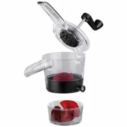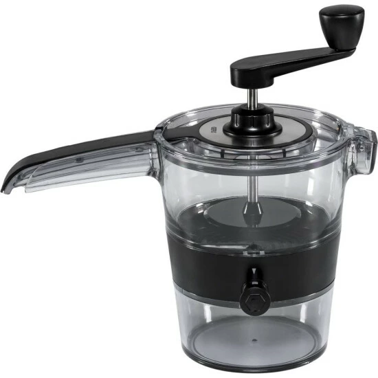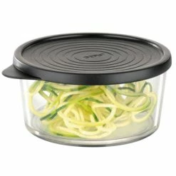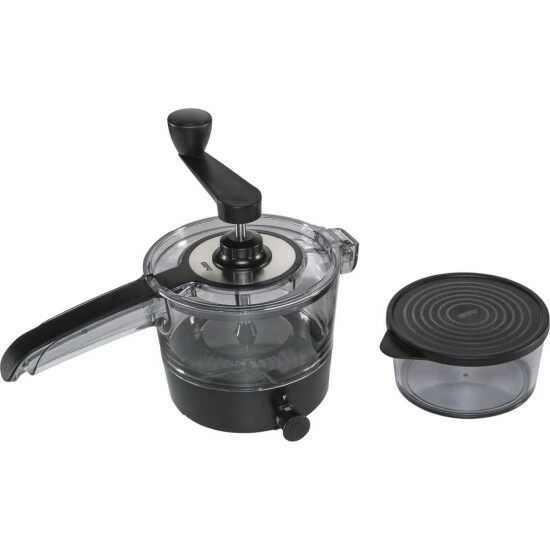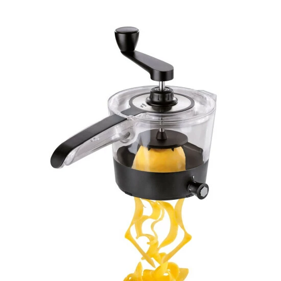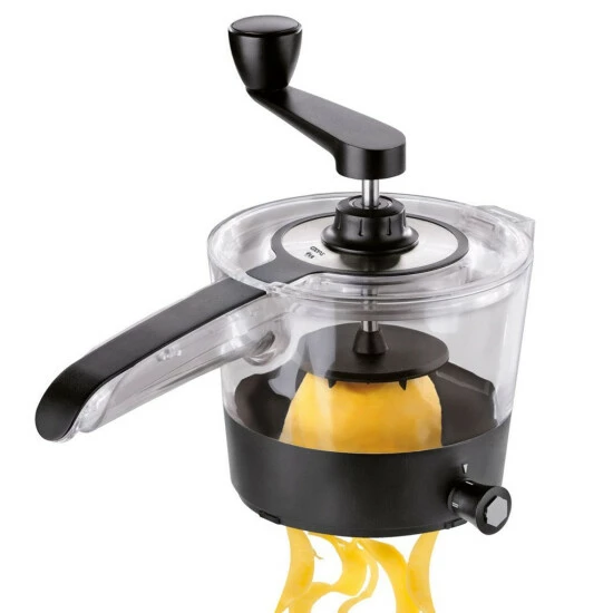 Chiudete il coperchio, girate la manovella esercitando una lieve pressione e raccogliete le verdure tagliate a spirale nel contenitore di raccolta antiscivolo.
