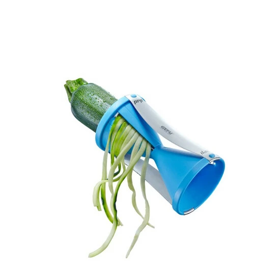 Der Spirelli, den wir hier in der Farbe Hellblau anbieten, macht schon allein durch seine strahlende Farbe Lust, in der Küche Neues auszuprobieren. Lassen Sie doch Ihre Kinder am besten gleich bei der Herstellung von Gemüsespaghetti mithelfen!