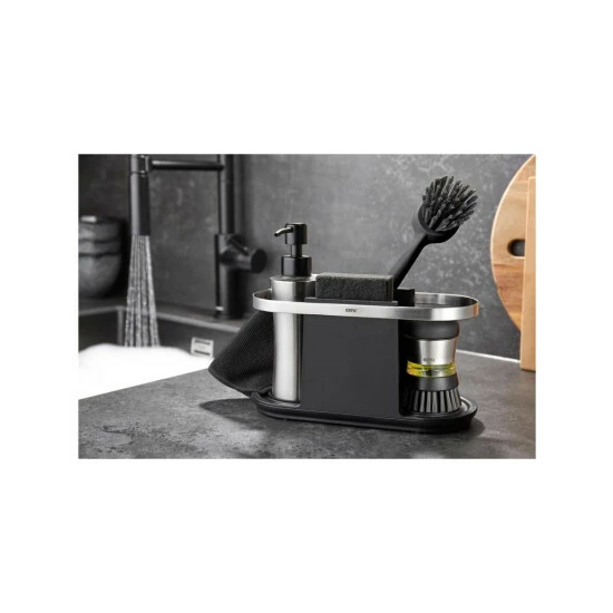 Stilvoll designed und besonders praktisch: der elegante Organizer SMARTLINE sorgt ab sofort für Ordnung in jeder Küche. Spülschwamm, Spülbürste, Spültuch und Spülmittelspender werden sauber und ordentlich aufbewahrt und sind stets griffbereit. Mit hygienischer Abtropfschale gegen Staunässe.