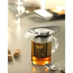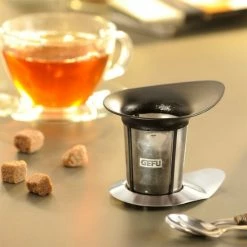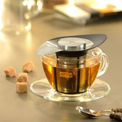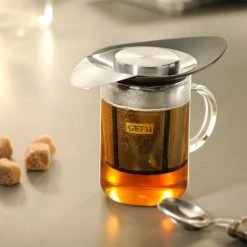 Gefülltes Teebrühen gibt Ihnen die Möglichkeit, den vollen Geschmack und das Aroma von Tee zu genießen und auch die Kraft des Getränks perfekt nach Ihrem Geschmack anzupassen. Ziehen Sie einfach die gebraute aus der Tasse oder Tasse zur für Sie bequemsten Zeit, damit der Tee nicht zu stark wird. Die Teekocher des deutschen Herstellers Gefu ähnelt einem traditionellen Teesieb, sieht aber viel moderner und eleganter aus, so dass Sie es leicht in Ihren stilvollen Service integrieren können. Sein großer Wert ist seine große Kapazität, so dass Sie es als Teesieb in einer einzigen Tasse verwenden können, sowie als viel größere Kanne. Der Filter zum Brauen von Tee „Armonia“ ist bequem zu bedienen. Sie sind leicht befüllt und entleert und gereinigt. Der Stahldeckel kann nach dem Brauen als praktische Untertasse verwendet werden, damit Flüssigkeitströpfchen nicht Ihren Lieblingsdrapieren verschütten. Edelstahl macht den Brecher sehr praktisch, hygienisch und langlebig. Der Filter kann in der Spülmaschine gewaschen werden.