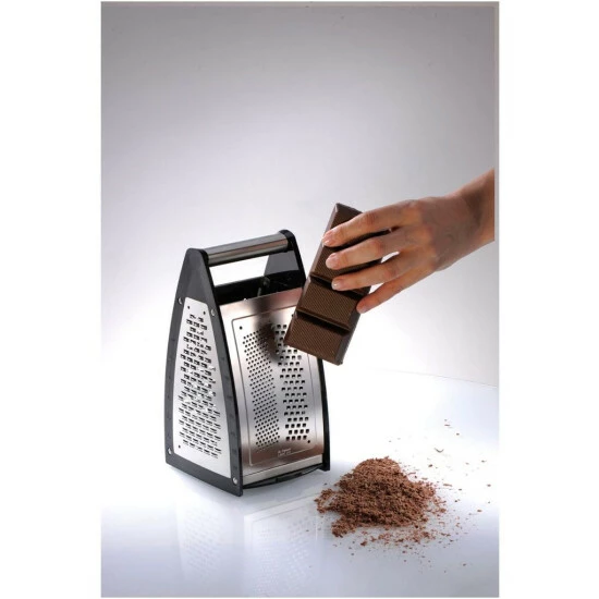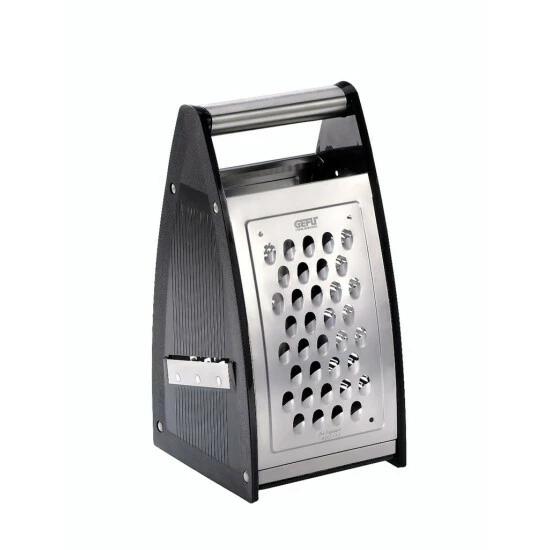 Scharf geschnitten! Sie ist extrem scharf und liefert mit den 4 verschiedenen Reibflächen – feine und grobe Reibfläche, eine Raspel, sowie einen Hobel – ein optimales Reibergebnis. Verschließbarer Boden.