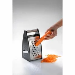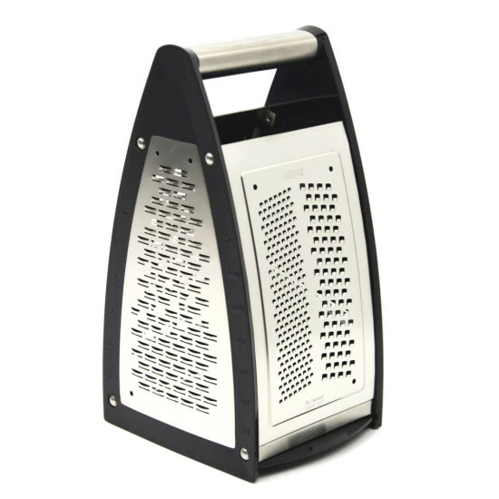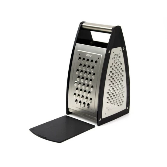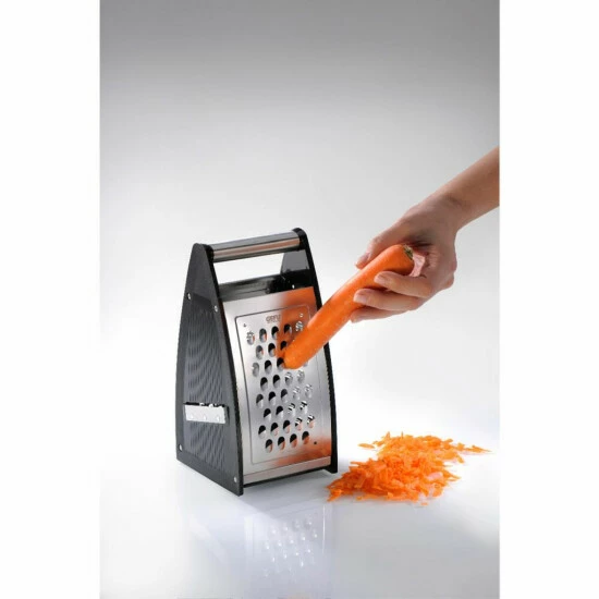 Vierkantreibe Lasercut Artikel-Nr. 89037 Edelstahl/Kunststoff mit 4 verschiedenen Reibflächen: o Gurken- und Kartoffelhobel o Raspel o Gemüse- / Weichkäsereibe o Rohkost- / Hartkäsereibe Verschließbarer Boden Spülmaschinengeeignet EAN 40 06664 89037 3 Scharf geschnitten! Sie ist extrem scharf und liefert mit den 4 verschiedenen Reibflächen – feine und grobe Reibfläche, eine Raspel, sowie einen Hobel – ein optimales Reibergebnis. Verschließbarer Boden.